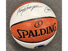 This item features a signed Stephen Curry and Klay Thompson Basketball.