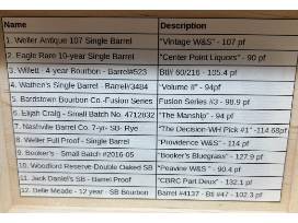 Whiskey House Nashville - Whiskey Tasting of a Lifetime 1. Weller Antique 107 Single Barrel 2. Eagle Rare 10-year Single Barrel 3. Willett 4-Year Bourbon Barrel #523 4. Wathen's Single Barrel - Barrel #3484 5. Bardstown Bourbon Co. - Fusion Series 6. Elijah Craig - Small Batch No 4712832 7. Nashville Barrel Co 7-yr - SB - Rye 8. Weller Full Proof - Single Barrel 9. Booker's - Small Bath #2016-05 10. Woodford Reserve Double Oaked SB 11. Jack Daniel's SB Barrel Proof 12. Belle Meade - 12 year - SB Bourbon