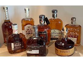 8 Bottles of Bourbon (Thirteen Colony Whiskey, Minor Case Straight Rye, Four Roses Small Batch Select, Uncle Earnest 1884, Whistle Pig Small Batch Aged 10yr, George Dickel, Old Forester Stateman and the Woodford Reserve is signed by Pekka Rinne