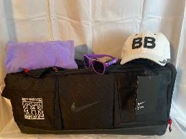 Show your Best Buddies support in style with this package that includes a Nike Best Buddies Duffle Bag, Size L - Long Sleeve Best Buddies T-Shirt, White Best Buddies Hat and Purple Best Buddies Sunglasses.