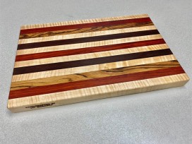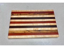 Handcrafted cutting board made with exotics hardwoods. 17 3/4in x 11 5/8in