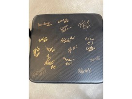March Madness chair autographed by the 2022 MBB tournament appearance team and coaches.