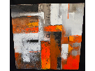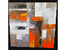 Two large mixed media abstract canvasses by unknown artist. Each piece 39"x40" on canvas unframed. ~Donated by Michael Gambino