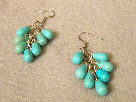Abeytu "Green Leaf" earrings. Turquoise teardrop beads attached with silver tone eye pins onto silver tone fish hook ear wires. ~Donated by Lucinda White lalucedesigns.com