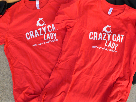 Cat and Mouse shaped scratchers! Handmade from Baltic Birch, wood, orange fabric and cardboard. And 2 Cattino Crazy Cat Lady t-shirts, size L. ~Donated by Cattino https://www.etsy.com/shop/Cattino