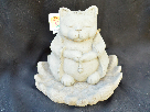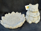 Charming garden art. This zen kitty made of concrete can sit either on top of the lotus flower or next to it. He may never decide! Wonderful piece for inside or out. ~Donated by Jeanette Yoshiumra