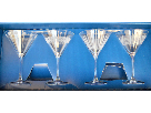 Contemporary matini glasses, each with a different cut-glass pattern! Super cool - photograph terribly! Come to the event and see them in person! ~Donated by Kourtnie Good