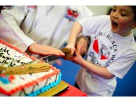 - Birthday child helps cut the cate with a karate sword!