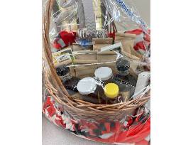 These two baskets are full of products from family businesses related to one of STM's most recognizable faces - photographer (and alumni parent) Val Hirsch. Included are products from Willow Creek Mill, Zahn's Maple Syrup, Hemken Honey, Valerie's Cocoa Bombs, and a handmade Wisconsin Badger blanket!