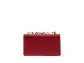 Chain shoulder strap, fold over magnetic closure. Size 8.25"W x 5.55"H x 1" D