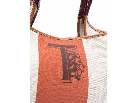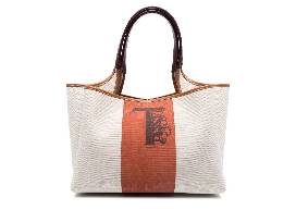 Tods Canvas Tote Bag With T Logo Design and Leather Strap Details. No refunds or exchanges.