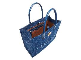Versace Navy Blue Denim & Leather Handbag. No refunds or exchanges.
