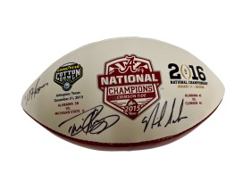 2015-16 National Championship Alabama football autographed by 2015 Heisman trophy winner Derrick Henry and coach Nick Saban.