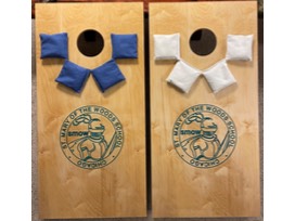 Regulation size bags game with epoxy inlay. SMOW Logo and 8 bags. 4 blue and 4 white bags.