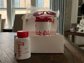 $100 Chick-fil-a gift card, pair of sunglasses, 16 oz. bottle of their signature sauce and a 20oz. reusable cup.
