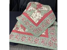 59" square custom quilted throw in rose and sage hues with Carpenter Star Quilt