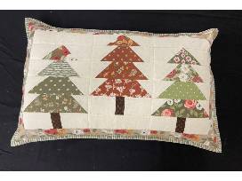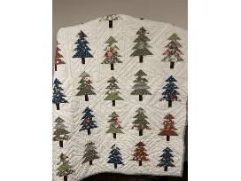 This beautiful 54" x 62" handmade quilt and 25" x 16" throw pillow is custom quilted using designer Fall colored fabrics in tree print. It has been lovingly made especially for Christ the Good Shepherd, and is labeled: "Christ the Good Shepherd Catholic Community Spring Texas Fall Festival October 15, 2022 Made and Quilted by: Colleen and Tina Brinton From our hands to your heart, may this quilt warm your body and comfort your soul."