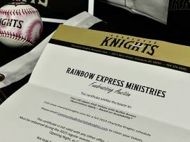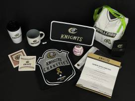 Take me out to the ballgame! Baseball lovers will enjoy this Knights package of Four (4) Upper Club Tickets with Buffet Access! But that's not all! It's loaded with one XL Knights T-Shirt; a Knights insulated lunch box; a Knights large fan flag; a Knights baseball; a Knights travel mug, a Knights coffee mug, 2 Knights coasters; a Knights koozie; a decorative Knights license plate perfect for a room! There are some date restrictions.