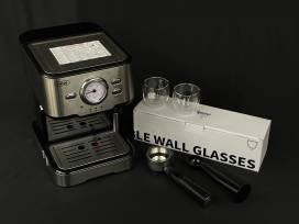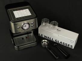 This basket also includes 4 glass double wall espresso cups (4 oz.), and a sleek black serving tray!