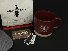 Here's a bundle from our favorite neighborhood coffee shop, Brakeman's. It includes a 12 oz. bag of Brakeman's Blend whole bean coffee, a burgundy and tan Brakeman's mug, a Brakeman's gray and black snap back hat, a Brakeman's sticker, and a $20 gift card! The perfect gift for any coffee lover.