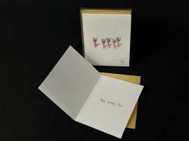 5These cards were created by some of our Rainbow Young Adults. This design features artwork by Hannah Bourne and handwriting by Jimmy DeSmedt. Each box includes 10 cards and 10 metallic gold envelopes.