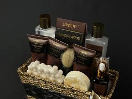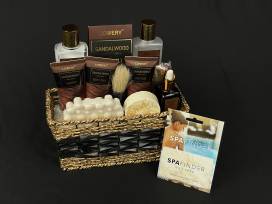 The perfect gift for any man! This Sandalwood & Oak Lovery basket packs the ultimate set of Self-Care Products, including Face Wash with Brush, Shower Gel, Bubble Bath, Body Lotion, Body Mist, Handmade Soap, Bath Salt, and Bath Puff wrapped in a Rustic Chic Wooden Basket. Also in this basket is a $50 Spa Finder gift card that can be used at multiple locations! Treat the man in your life!