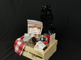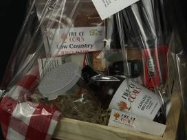 If you love to BBQ or know someone who does - this is a great gift box full with seasoning goodies to try! Included is a bottle of Fire of Coals Carolina BBQ Sauce Vinegar style, a package of low country BBQ rub (good for pork, poultry, beef, and seafood), a shaker, grill gloves, a Weber meat thermometer, tongs and some hickory wood chips.