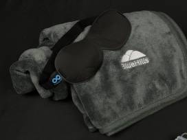 You can relax and travel in comfort. This includes: a memory foam neck pillow with washable cover and carry bag; Blue Hills fleece travel blanket, a black cross body fanny pack and two durable silicone luggage tags. Everything you need for a worry-free comfortable trip.