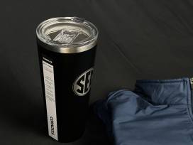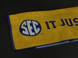 Show your SEC pride! This bundle includes a dark blue Peter Millar quarter zip lightweight fleece lined jacket, black SEC logo tumbler, and a fun SEC heavyweight blue and yellow beach towel.