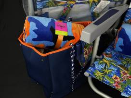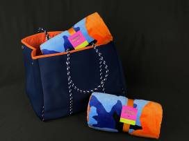 -A blue Beach Bag tote with inner zipper pocket to carry your phone, sunscreen and all your valuables.
