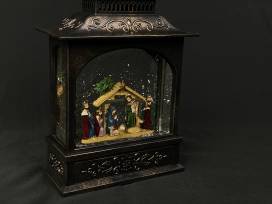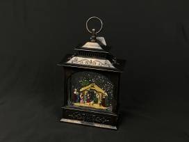 Add this beautiful oil rubbed bronze snow lantern to your collection or let this be the start of a new tradition. This battery powered lantern holds a precious depiction of the Nativity scene that sparkles as it plays Silent Night! A lovely addition to your Christmas decor.