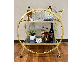 This package includes a bar cart, Brumate bar shaker, marble coasters, 4 Mikasa rocks glasses, ice bucket, planter, and the following bottles of alcohol: Tito's Handmade Vodka, Breckenridge Bourbon Whiskey, Juggernaut Russian River Pinot Noir, and Bocelli Pinot Grigio.