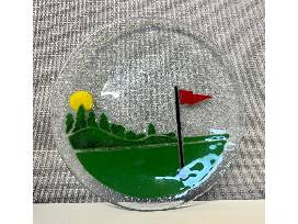 This basket includes a $100 gift card to Aurelio's Pizza, a bottle of Tito's Handmade Vodka, and gently used golf themed plates (4) & a small platter.