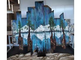This auction piece measures 11' x 4' and is made out of Home ReSource upcycled canvases that were made out of hollow core doors.