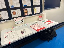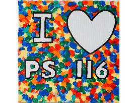 This acrylic paint thumbprint "I Love 116" canvas is 14 by 14 inches.