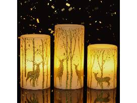 Flickering Flameless Candles Battery Operated with 6 Hours Timer, Real Wax Led Pillar Candles Deer Decal Warm Light, Pack of 3 Christmas Home Decor