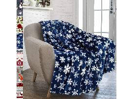 Cozy fleece snowflake throw blanket, navy with white snowflakes, 50x60 inches