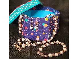Freshwater pearl necklace, 18", with sterling silver beads, matching 8" bracelet and matching French Wire earrings.