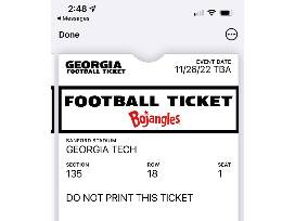 2 UGA/Ga Tech football tickets for the November 26 game in Athens. Seats are section 135 Row 18 seats 1 and 2.