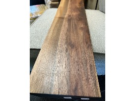 The shelf is fashioned from solid black walnut and is treated with clear Rubio Monocoat which is 100% VOC free.