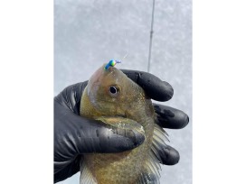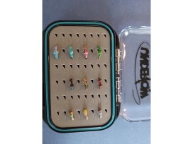 These are custom ice fishing jigs from Undertow Baits. Includes a traveling case.