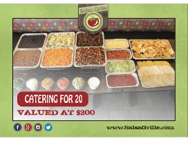This item includes a taco bar for 20! You get set up, 2 meats, tortillas, beans, rice, chips and salsa!