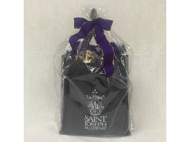 A St. Joseph Academy tote filled with the following St. Joseph Academy spirit wear: crew socks, crosshatch wristlet, journal, t-shirt (L), Jaguar plush pal, 26 oz. excursion bottle, hat & a sweatshirt blanket.