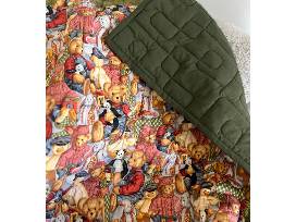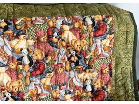 - Handmade, ultra soft blanket with bear and duck print in shades of green & brown, 50" x 80"