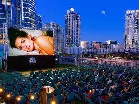 The movie begins after the sun goes down, just as the stars are coming out and the city lights are starting to twinkle. Outdoor movies have never looked so great.