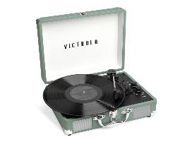 Enjoy this brand-new Victrola "The Journey +" suitcase record player. This player is equipped with Bluetooth streaming and a Michael Bublé Christmas record album.