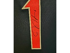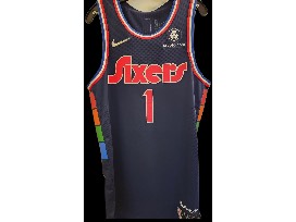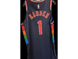 Authentic signed jersey by Philadelphia 76ers great James Harden.