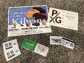 Dinner for 2 at Parker Garage, $50 to Black & Haus Tavern, $40 to Indochine, $100 to Tailgate and 3 Slices of Fudge from Kilwins! YUM!!