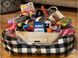 Do you love your dog? Do you want to spend all of your time spoiling him or her? We have the perfect basket for you! From a comfy dog bed to a toys holder to tons of toys and treats to leashes and more, your canine companion will know how much you love them when you bring home this basket of amazingness.