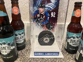 Raise a glass of Breckenridge Beer and marvel at your signed Avs hockey puck. Signed by Gabriel Landeskog our fearless leader (captain) who helped drive the Avs to the ultimate win?2022 Champions.